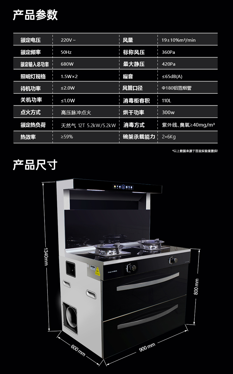 900寬集成灶5.2kW配置消毒柜款