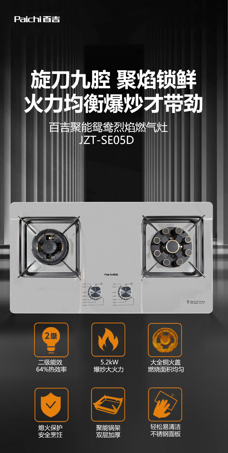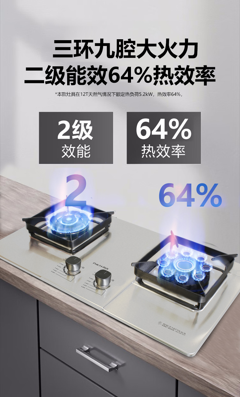 5.2kW聚能大火力 64%高熱效率